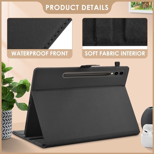【Alta qualità】Custodia per Samsung Galaxy Tab S9+ 12.4 pollici tablet 2023 in pelle realizzata in pelle PU di alta qualità e morbida microfibra, impermeabile, durevole e resistente. La parte posteriore in morbido TPU protegge il tablet da urti, cadute e shock.