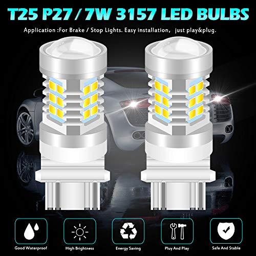 ★ 【3157 3155 3157A Lampadine a LED】 (Confezione da 2 lampadine) Ogni lampadina ha 21 chip ad alta potenza 2835 LED, capacità massima 80W, funziona a 10,5 W, 6500K xenon bianco, 2000 Lumens Output (1000 Lms per bulbo) estremamente luminoso, molto più luminoso di lampadine alogene. Durata della vita: 50.000 ore, tensione operativa: 12-24 V, lumen alti e estremamente luminosi.