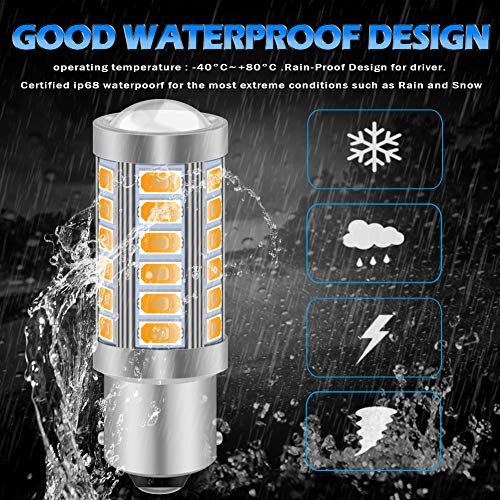 ★ 【1156 BA15S Lampadine a LED】 La lampadina a risparmio energetico Super Bright Amber 5630 SMD (33 LED) ha una tensione operativa di 12 V ed è progettata per durare 50.000 ore - 50 volte più a lungo rispetto alle lampade a incandescenza.
