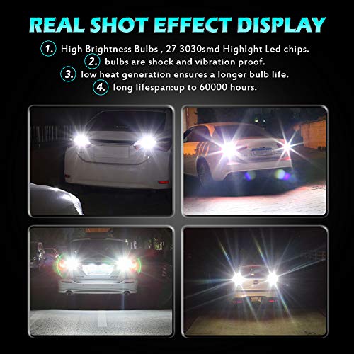 ★ 【1157 lampadine LED BAY15D】 Ogni lampadina ha 27 led ad alta potenza 3030 chip led, capacità massima 80W, funziona a 10W, 6500K Xenon White, lunga durata: 60.000 ore, tensione di funzionamento: 12-24V.2700 lumen. Alti lumen ed estremamente luminosi.