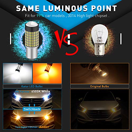 KATUR 1157 BAY15D P21 / 5W Lampadine LED di commutazione Bianco/Giallo 3014 120SMD con proiettore per indicatori di direzione e luci di Marcia Diurna/DRL, con resistori di carico da 50W 8ohm