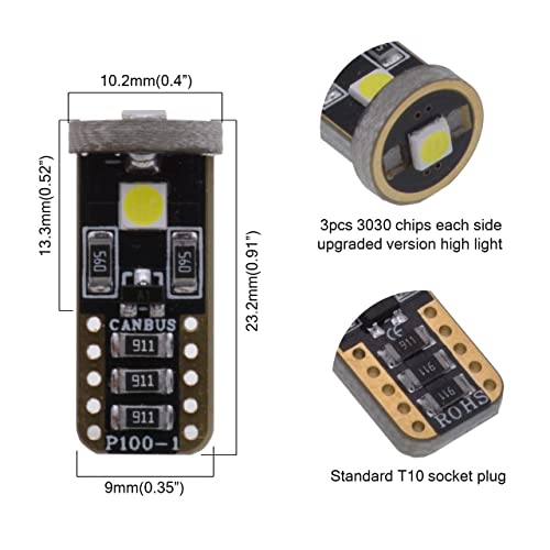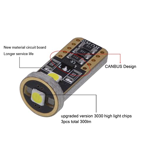 KATUR T10 Canbus LED bianco per auto lampadine T10 W5W 3 SMD 5050 super luminose 194 168 175 192 2825 cuneo LED auto lampadine di ricambio luci a cupola laterale Mappa interna (confezione da 4)