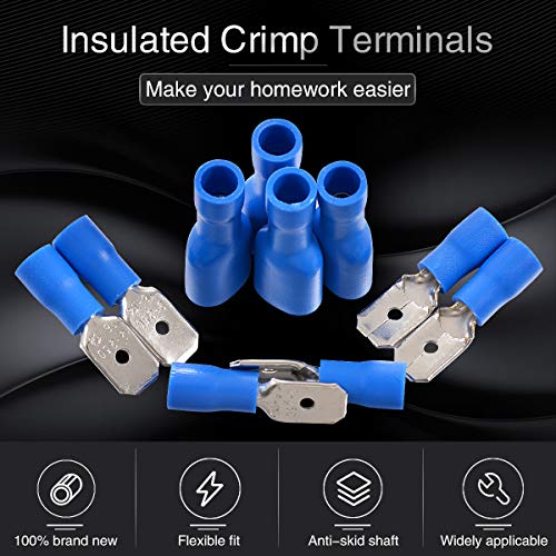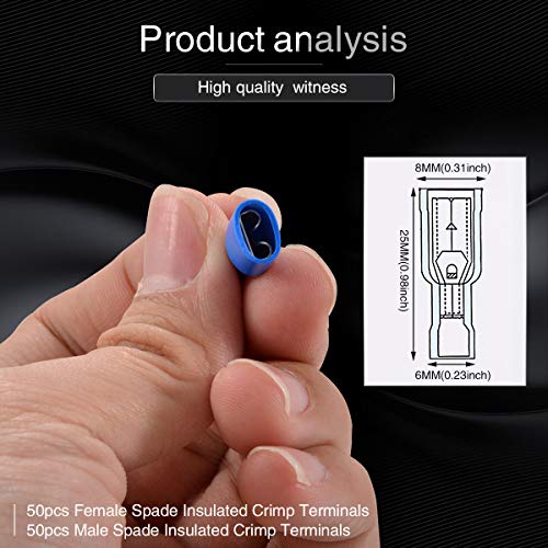 ★ 【 100 connettori a crimpare a vanga 】 realizzati in poliolefina e PVC di alta qualità, materiale in nylon per il manicotto isolante, ritardante di fiamma, morbidi e si restringono velocemente, compresi i connettori maschio e femmina.