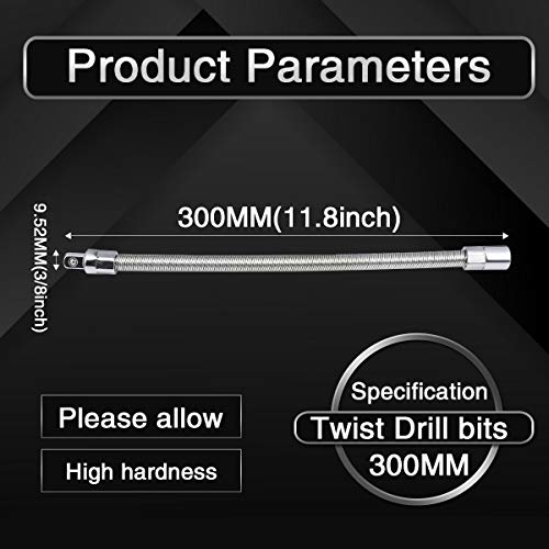 ★【Presa flessibile】Realizzata in acciaio al cromo vanadio trattato termicamente con asta flessibile in acciaio per molle, antiruggine e resistente, gambo da 3/8 pollici e lunghezza 300mm.