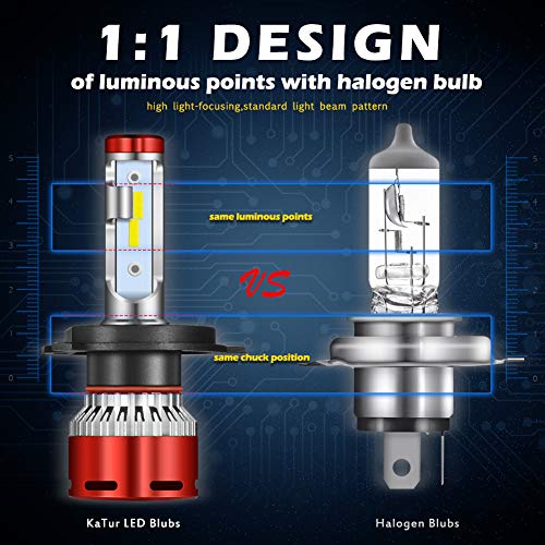 KATUR H4 9003 HB2 Hi/Lo Lampadine per fari a LED Chip CSP Mini Design Super Bright 12000LM Kit di conversione del Faro Impermeabile 60W 6500K Xenon White-2 Years Waranty