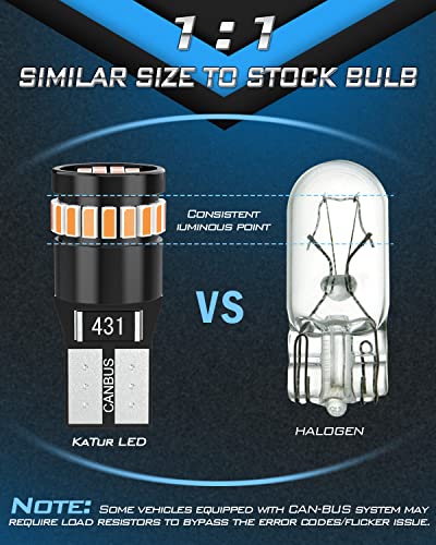KATUR 194 LED Lampadina Ambra Gialla Super Luminosa 168 2825 W5W T10 Wedge 24-SMD 3014 Chip LED Lampadine di Ricambio Canbus Senza Errori Dome Map Door Luci Targa di Cortesia (4 Pezzi, Ambra)