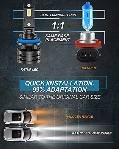 KATUR H8 H9 H11 Lampadine per fari a LED Mini Design Upgrade di Chip 12000 Lumen Kit di conversione del Faro all-in-One LED Completo 55W 6500K Xenon White-2 Years Waranty
