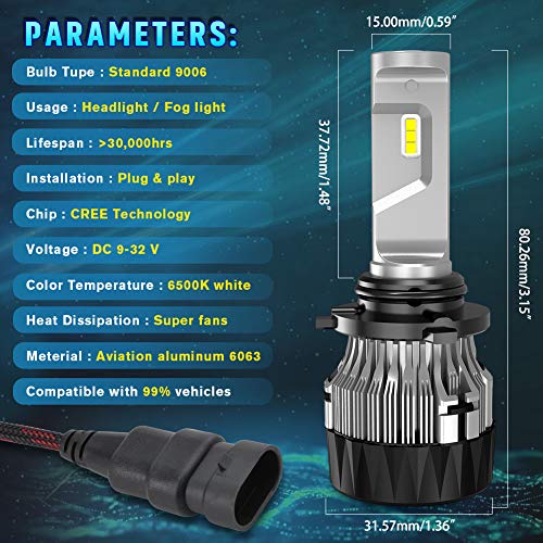 ★ 【9006 HB4 Lampadine per fari a led】 (confezione da 2) Temperatura di colore: 6500 K Xenon White. Funzionamento a 60 W (30 W per lampadina). Tensione di funzionamento: DC 9-32 V (per veicoli 12V, 24 V). Uscita 10000 Lumen (5000 Lms per lampadina), molto più della lampada alogena e della lampada HID.