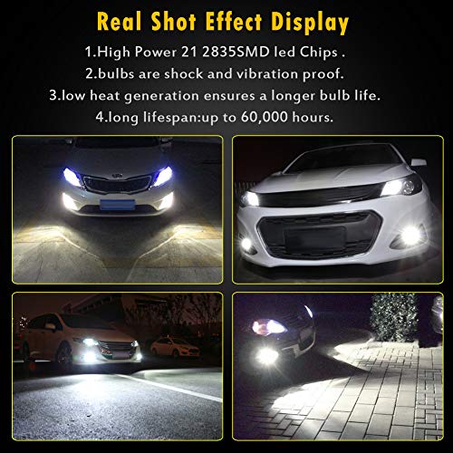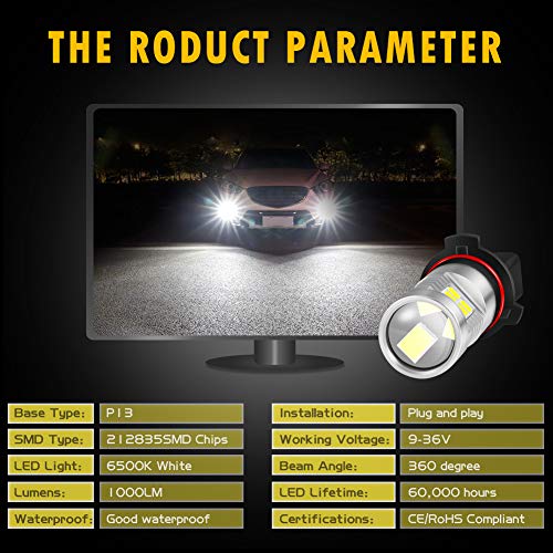 ★ 【P13W LED Fendinebbia e DRL】 Ogni lampadina ha 21 chip ad alta potenza 2835 led, capacità massima 80W, funziona a 10,5 W, 6500K bianco allo xenon, 2000 lumen (1000 Lms per bulbo) estremamente luminosi, molto più luminosi delle lampadine alogene.