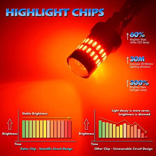 KATUR 4 X 1200 Lumen 1157 BAY15D 2057 2357 7528 Lampadine a LED 4014 Chipset 48-Ex con proiettore per luci Posteriori Luci di Stop Luci di Segnalazione, Rosso Brillante 9-30 V