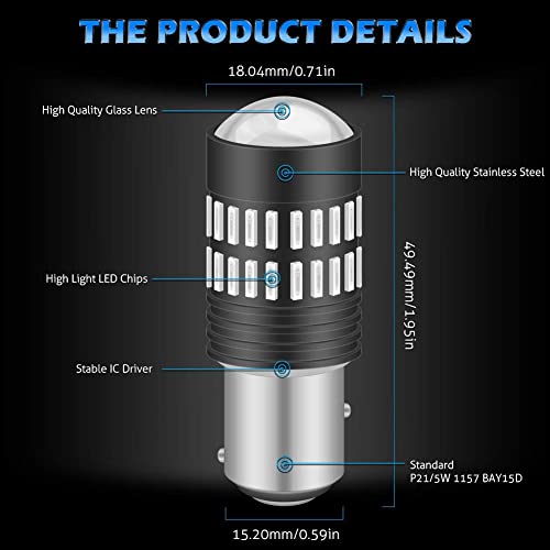 ★ 【Numero di riferimento incrociato】 La base di doppio contatto standard 1157 / BAY15D può sostituire le lampadine a incandescenza o gli incandescenti come 1016 1034 1157 1157A 1178A 1196 2057 2057A 2357 2357A 2357NA 2397 3496 7528 94.