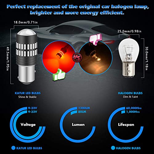 KATUR 2 X 1200 Lumen 1157 BAY15D 2057 2357 7528 Lampadine a LED 4014 Chipset 48-Ex con proiettore per luci Posteriori Luci di Stop Luci di Segnalazione, Rosso Brillante 9-30 V