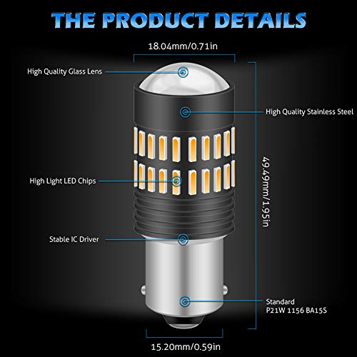 ★ 【Lampadine a LED 1156 P21W 7506】 (Set di 2 lampadine) 48-pezzi ad alta potenza 4014 chipset EX per lampadina con proiettore. Colore: ambra. Tensione di funzionamento: 12v-24v.Lampada di uscita: 1200 lumen ogni lampadina. Lampadina: Dimensioni: 1,95 "(lunghezza) * 0,7" (diametro base), ben abbinata alle luci originali ad incandescenza.
