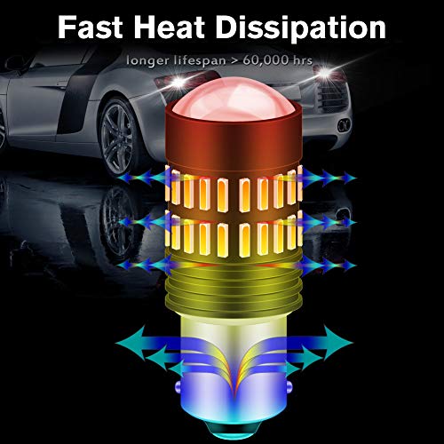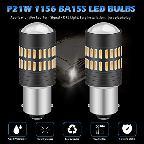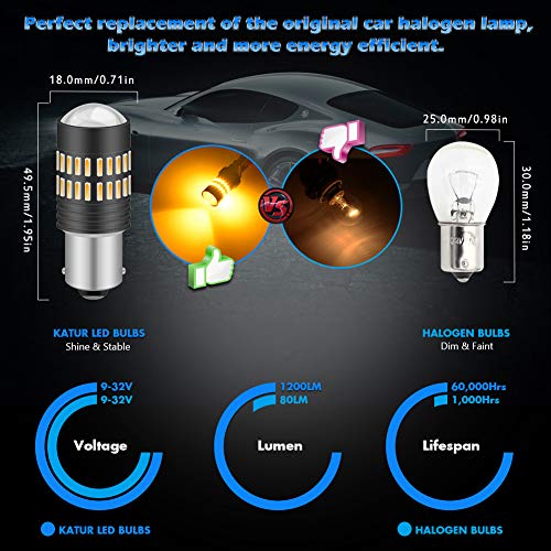 KATUR 2 X 1200 Lumens 1156 1003 1141 7506 BA15S Lampadine a LED 4014 Chipset 48-Ex con proiettore per indicatori di direzione Luci Sidemarker, Giallo Ambra 9-30V