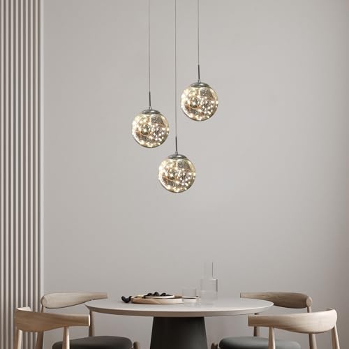 KAUCQI 3 sfere di vetro LED Pendant Light, Creative Starry lunga luce pendente, scala lampadario LED, luci a sospensione con lunghezza regolabile...
