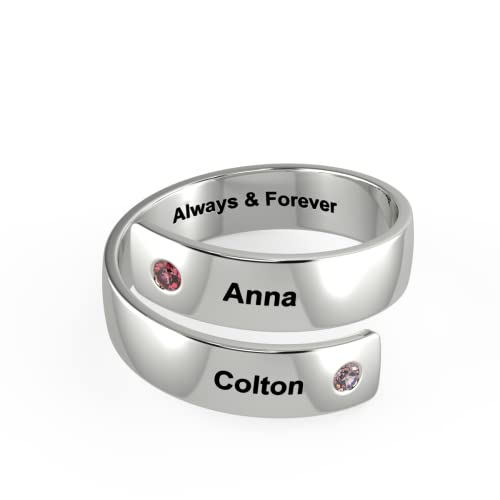 KAULULU Nome Anello Donna Uomo Personalizzato con 2 Nomi Incisione Birthstone in Acciaio inossidabile Personalizzabile Anelli per Compleanno/Natale/San Valentino(Silver)