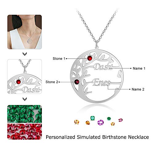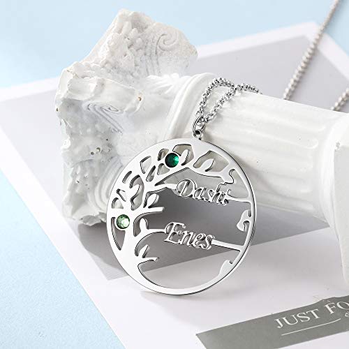 Kaululu Collana Donna Albero della Vita con Nome Personalizzabile 2-4 Famiglia BFF Nomi Incisione Simulato Pietre Collane Mamma con Nome Ciondolo in 925 Argento Gioielli Compleanno (Silver, 2 Name)