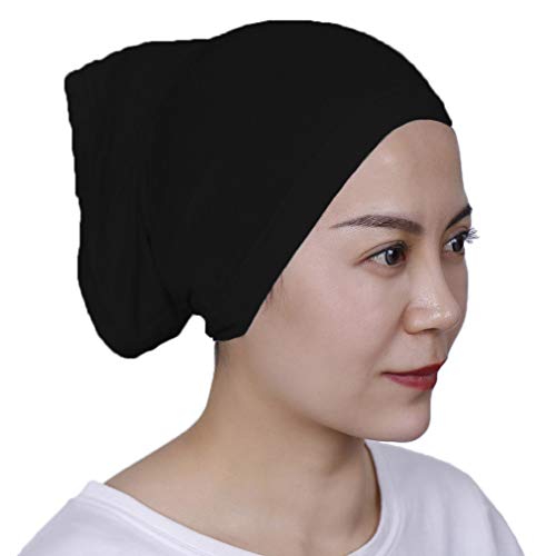 KAVINGKALY Donne Sottosciarpa Cappello Hijab Cap Islamico Musulmano Sotto Sciarpa Hijab Cap con Tie-Back Chiusura, Nero, M