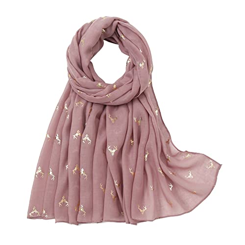 KAVINGKALY Sciarpa Stampata Con Cervi D'oro per Donne Sciarpe con Motivi Animali Soft Premium Fashion Scialle Lungo Avvolge(pelle di cervo rosa)