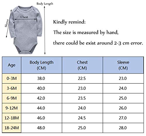 Facile da pulire - Tanto durevole quanto morbido, il body per neonato a manica lunga è lavabile in lavatrice e non si restringe né si sbiadisce. Il cotone di alta qualità mantiene la sua forma senza allungarsi nel tempo