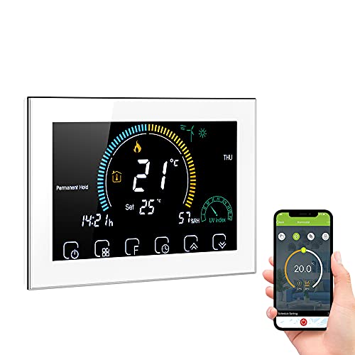 Kavolet Termostato programmabile intelligente, per caldaia acqua/gas, con indice UV/display umidità/funzione di blocco, Controllo APP vocale,LCD retroilluminato, Compatibile con Echo Google Home