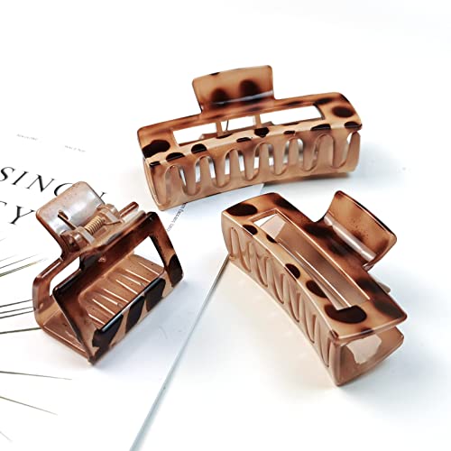 Kavya Pinze per Capelli Grande, 3 Pezzi Durevole Plastica Leopardo Mollettone Capelli Clip Artiglio, Antiscivolo Medie Fermaglio Capelli Donna Accessori per Capelli Spessi