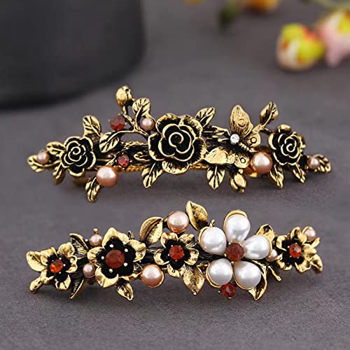 Kavya Vintage Fermaglio Capelli Donna Elegante, 2 Pezzi Metallo Francese Fermagli Capelli Donna, Perla Cristallo Fermacapelli Donna Adatto a Donne con Capelli Fini
