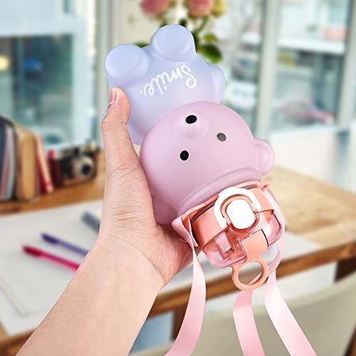 【Tracolla Portatile e Regolabile】La kawaii borraccia da viaggio è dotata di tracolla morbida, che rende le kawaii borraccia facile da trasportare. Kawaii borraccia la tracolla è regolabile, può essere regolato alla lunghezza desiderata, straw borraccia adatto sia per adulti che per bambini.