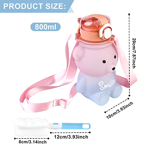 Kawaii Borraccia, Large Capacity Bear Water Bottle, with Strap And Straw, Adjustable Removable Strap Adatto Donne e Bambini, Sport all'aria Aperta Straw Borraccia (Sfumatura Blu Polvere/800ml)