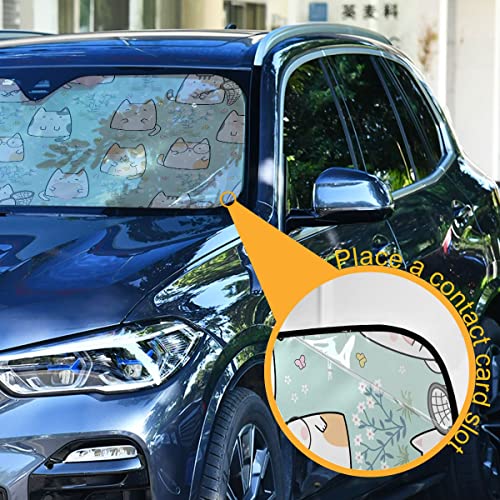 Kawaii Carino Gatto Parabrezza Parasole per Van Trucks SUV Pieghevole Parasole per Finestra Anteriore Auto Parasole Blocchi Protezione Raggi UV Accessori Interni Auto 55x70 cm