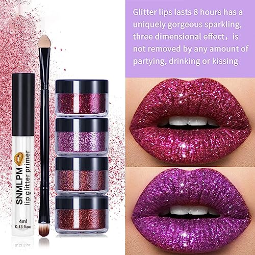 Kawaii Kisses - Kit labbra glitterate con glitter, impermeabile, colore: rosso
