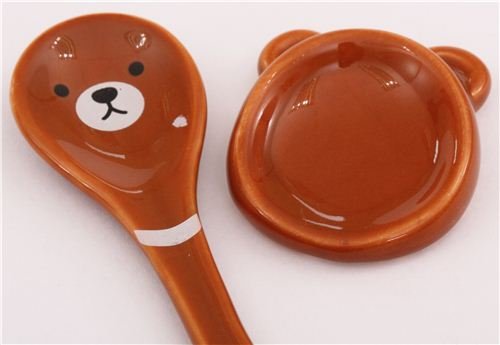 Kawaii Simpatico Set Cucchiaio Posa-Cucchiaio Orso Marrone in Ceramica Decole