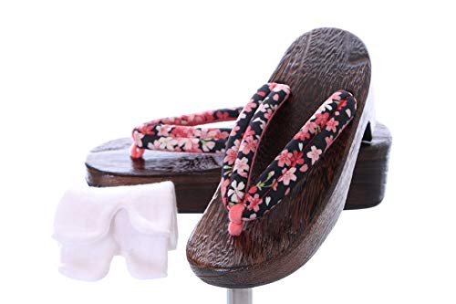 Kawaii-Story K-G-62-1 Rosa Nero Sakura Fiori Naturale Legno Originale Giappone Geta Sandalo Tabi Kimono Geisha Infradito, multicolore, 40 EU
