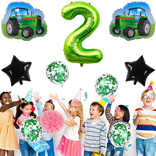 Kawailay Trattore - Decorazione per compleanno, 2 anni, 2° trattore, decorazione di compleanno, verde, numero 2 palloncini, trattore, in alluminio, per bambini, ragazzi, feste di compleanno