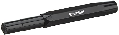 Il grande set offre una penna stilografica, quattro spessori del tratto (1,1 mm, 1,5 mm, 1,9 mm e 2,3 mm), 3 tappi di protezione per gli inserti intercambiabili e 2 confezioni di cartucce d'inchiostro originali Kaweco in nero perla