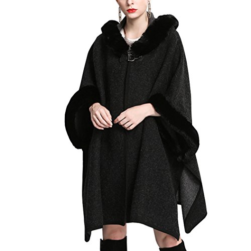 KAXIDY Donne Scialli Elegante Scialle Capispalla Mantelli Cappotti Poncho e Mantelle (Nero)