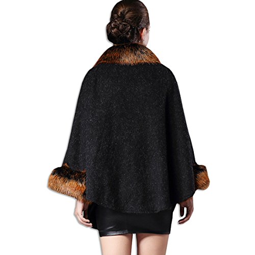 KAXIDY Elegante Donna Mantelli Cappotti Poncho e Mantelle Soprabito (Nero)