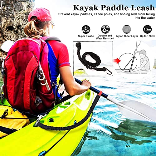 Kayak Paddle Leash 2 PCS Elastica Pagaia Guinzaglio Canoa Kayak Paddle Guinzaglio Elastico Kayak Paddle Rope Guinzaglio Pagaia per Kayak di Sicurezza per Tavola Surf Kayak Canoa Accessori 1.5 m Nero