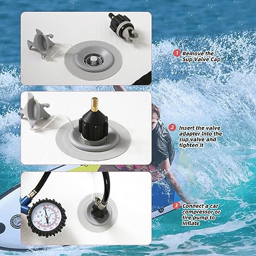 VERSATILE: i nostri adattatori per compressori SUP sono versatili e possono essere utilizzati per diversi tipi di gommoni, paddleboard e kayak. Sia che abbiate un piccolo gommone o una grande tavola da paddle, questo adattatore funzionerà perfettamente, rendendo questo adattatore per pompa SUP un must per le vostre esigenze di gonfiaggio!