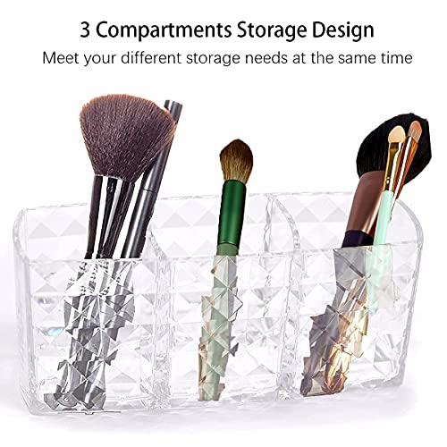 KAYSENSUK Rganizer con 3 Scomparti, Supporto in Plastica per Toeletta, Contenitore per Trucco per Pennelli, Eyeliner, Rossetti e Altro, Plastica per Matite e Eyeliner, Trasparente