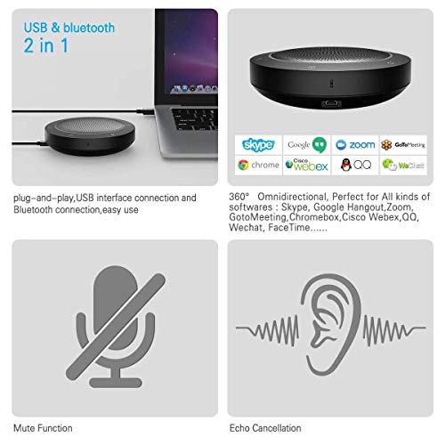 Chiamate in conferenza tramite connessione USB e Bluetooth, Semplice da usare: puoi connettere questo dispositivo al tuo smartphone, tablet, laptop ... con la funzione bluetooth, oppure puoi anche collegare questo dispositivo al computer con il cavo USB direttamente, spina e gioca