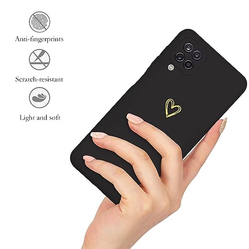 Kaywzo Cover per Samsung Galaxy A12,Custodia in Silicone TPU Liscio di Morbido con Modello Cardiaco,Design Minimalista,Ultrasottile Donna Antiurto Case Cover,Nero