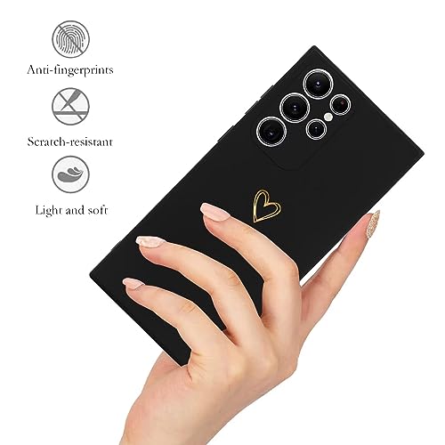 Kaywzo Cover per Samsung Galaxy S22 Ultra 5G,Custodia in Silicone TPU Liscio di Morbido con Modello Cardiaco,Design Minimalista,Ultrasottile Donna Antiurto Case Cover,Nero
