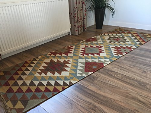 Kazak geometrico tessuto piatto in iuta passatoia kilim - 75 cm x 240 cm