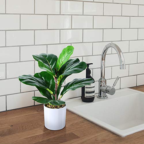Kazeila Mini false piante in vaso pianta di fico foglia di violino artificiale 40 cm per ufficio a casa hotel libreria caffè decorazione