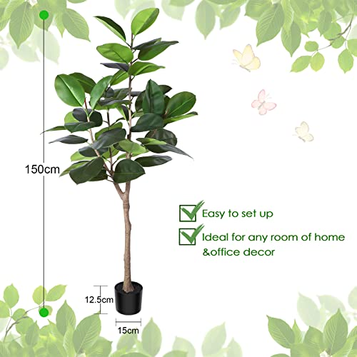 Kazeila Piante Finte da Interno 150cm Albero della Gomma Piante Finte Artificiali da Interno Grandi Decorazioni la Casa