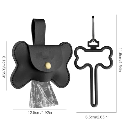 Kazuko - Dispenser di sacchetti per escrementi per cani, in pelle, con dispensatore, a mani libere