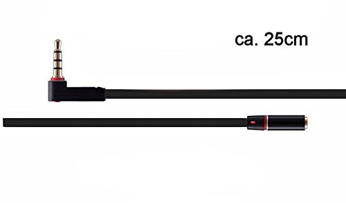 SRC - kb10-S - Stereo Prolunga Cavo Di Collegamento A 4 poli spina jack 3,5 mm, P. es. per Apple Iphone 3 4 4s 5 5S 5 C 6 6 S iPod iPad/AUX IN/presa jack stereo 3,5 mm circa 25 cm per iPhone 3 4 5 e iPod, Samsung Galaxy S2 S3 S4 S5 S6 Mini Nokia Lumia HTC Honor Mii Huawei ideale per auto
