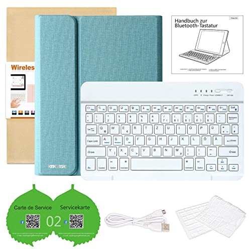 KBCASE Custodia con tastiera magnetica rimovibile senza fili Bluetooth con layout QWERTZ, addormentarsi automaticamente..