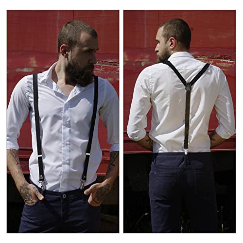 KBJUH Bretelle Uomo Bretelle Da Uomo e Papillon Completo Uomo/Donna/Ragazzi Vintage 3 Clip Y Elastico Regolabile Per Altezza 155-180 Cm